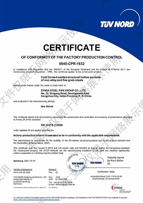 滄州市鑫宜達管道有限公司成立于2003年7月,坐落于滄州經濟開發區,占地面積40萬平方米,注冊資金1.81億元,是集螺旋鋼管生產、防腐加工以及無縫鋼管、卷板、帶鋼等品類鋼材經營銷售于一體的工貿型企業。公司現有員工400多人,其中,中高級技術職稱的人員達120余名。 滄州市鑫宜達管道有限公司擁有9條螺旋鋼管生產線和3PE防腐生產線,可生產直徑219--3640mm,壁厚5.5--28mm,最高鋼級X100的各種規格防腐螺旋鋼管...